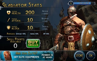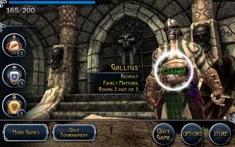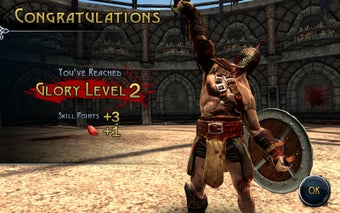 Blood & Glory destaca por la calidad de sus gráficos, muy conseguidos para el tipo de juego, donde la libertad de movimientos queda restringida a esquivar golpes y atizar al contrario. A medida que ganes combates, obtendrás puntos para intercambiar por nuevas armas y más protección.